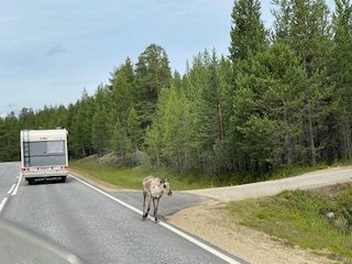 Wetter war gut Sonne und 18* war die kühlste Temperatur. Einige Rentiere säumten wieder unseren Weg. Obacht geben länger leben ist das Motto, Die kleinen Racker kommen so unvermittelt auf die Straße, immer unberechenbar.