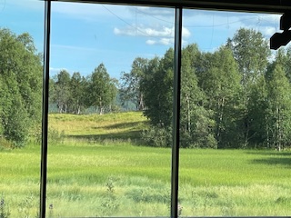 Nach der gestrigen Monsteretappe ein Entspannungstag. So 34 Km auf der E6 , viel Verkehr, aber ihr werdet es nicht glauben, wir durften 110 Km/h fahren. Ein wahrer Geschwindigkeitsrausch. Südlich von Trondheim verändert sich die Landschaft total. Nadelwald ist beherrschend und wie wir die E 6 ins östliche Landesinnere verließen , sahen wir das erste Mal Landwirtschaft mit Getreidefeldern und Bauernhöfen. Sogar ein Cafehaus war am Weg. Das wurde sofort besucht. Beim Frühsrück im Hotel gab die Cafemaschine den Geist auf und das war somit unser erster Café.